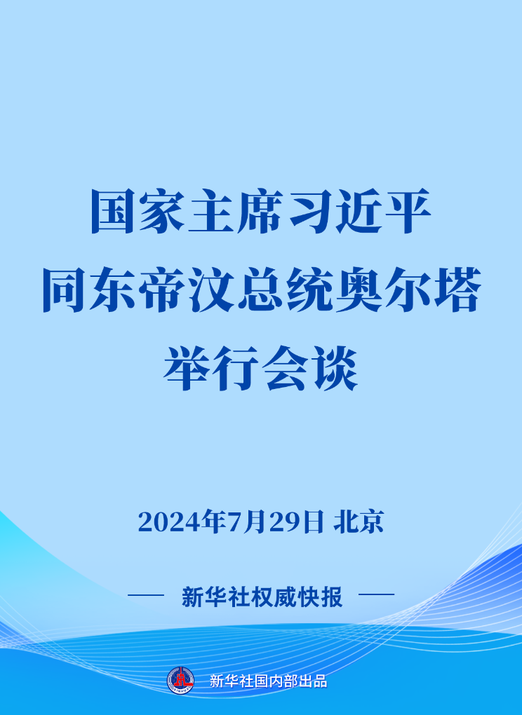 7月29日上午,国家主席习近平在北京人民大会堂同来华进行国事访问的东帝汶总统奥尔塔举行会谈。
