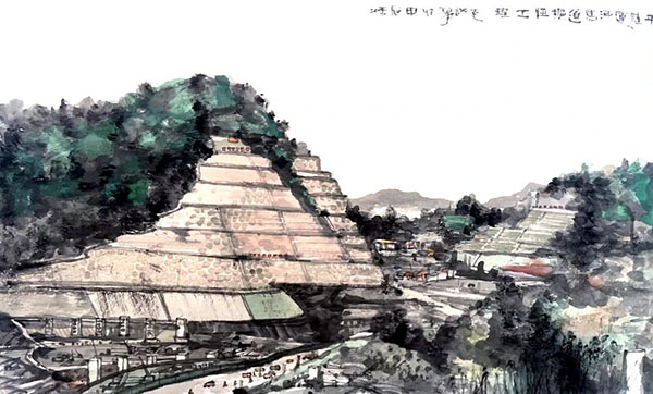 石向东 纸本设色 39x65cm 于平陆运河工程马道枢纽