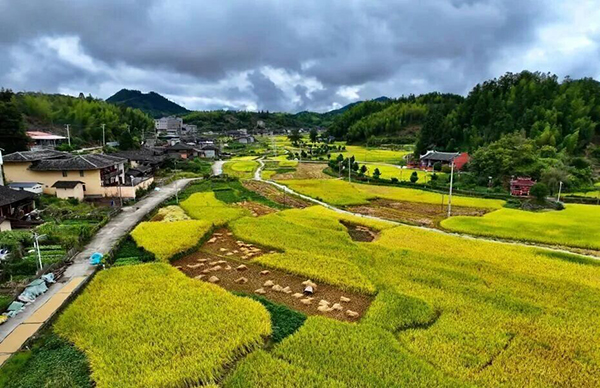 金秋时节,永泰县的乡村田野迎来了一年中最富诗意的时刻。随着水稻陆续成熟,从高空俯瞰这片闽中大地,层层叠叠的金色稻浪在群山间起伏,与错落分布的村落、蜿蜒的溪流交织在一起,构成了一幅壮丽的秋日丰收画卷。