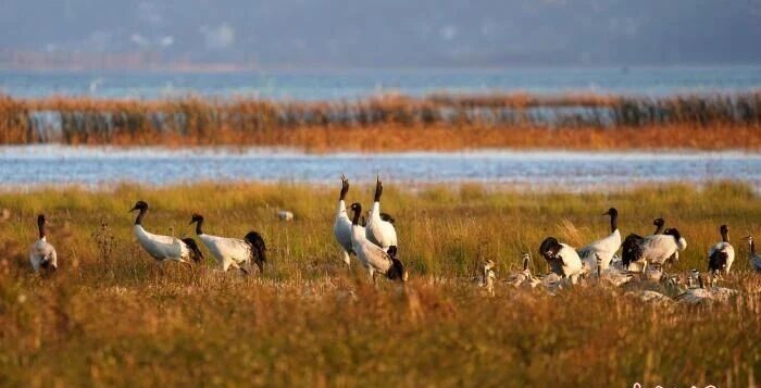 连日来,贵州省毕节市威宁彝族回族苗族自治县草海国家级自然保护区迎来大批黑颈鹤越冬。草海国家级自然保护区是一个完整的、典型的高原湿地生态系统,是中国特有的高原鹤类黑颈鹤的主要越冬地之一。截至11月16日,贵州草海国家级自然保护区管委会在草海保护区监测到黑颈鹤114只。