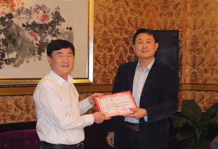 2012年3月27日,《城市建设》杂志社社长王克剑会见来京到访的湖南郴州市副市长一行,郴州市副市长雷晓达代表郴州市人民政府向王克剑社长颁发“罗霄山郴州片区区域发展与扶贫攻坚规划委员会委员证书”。