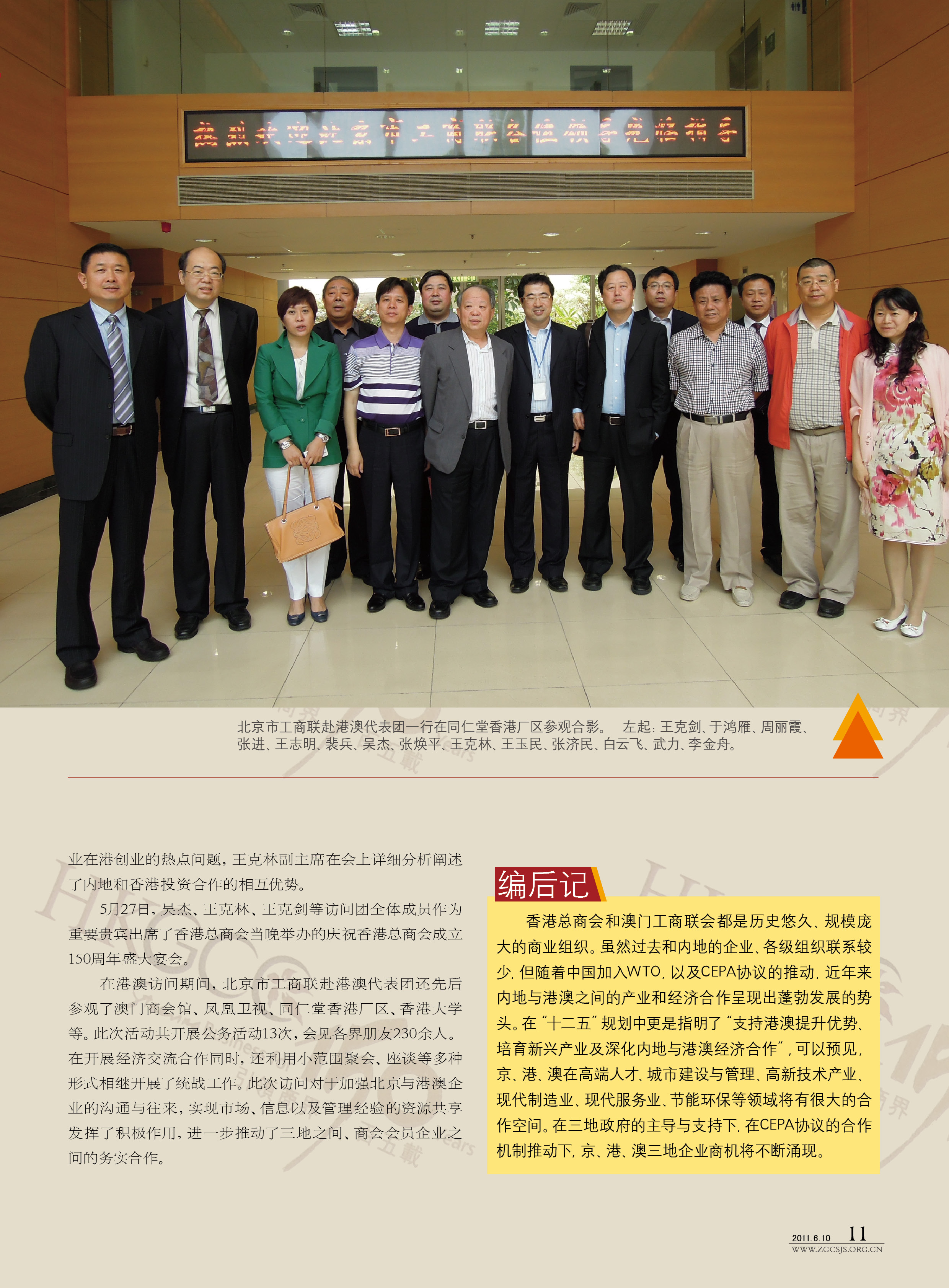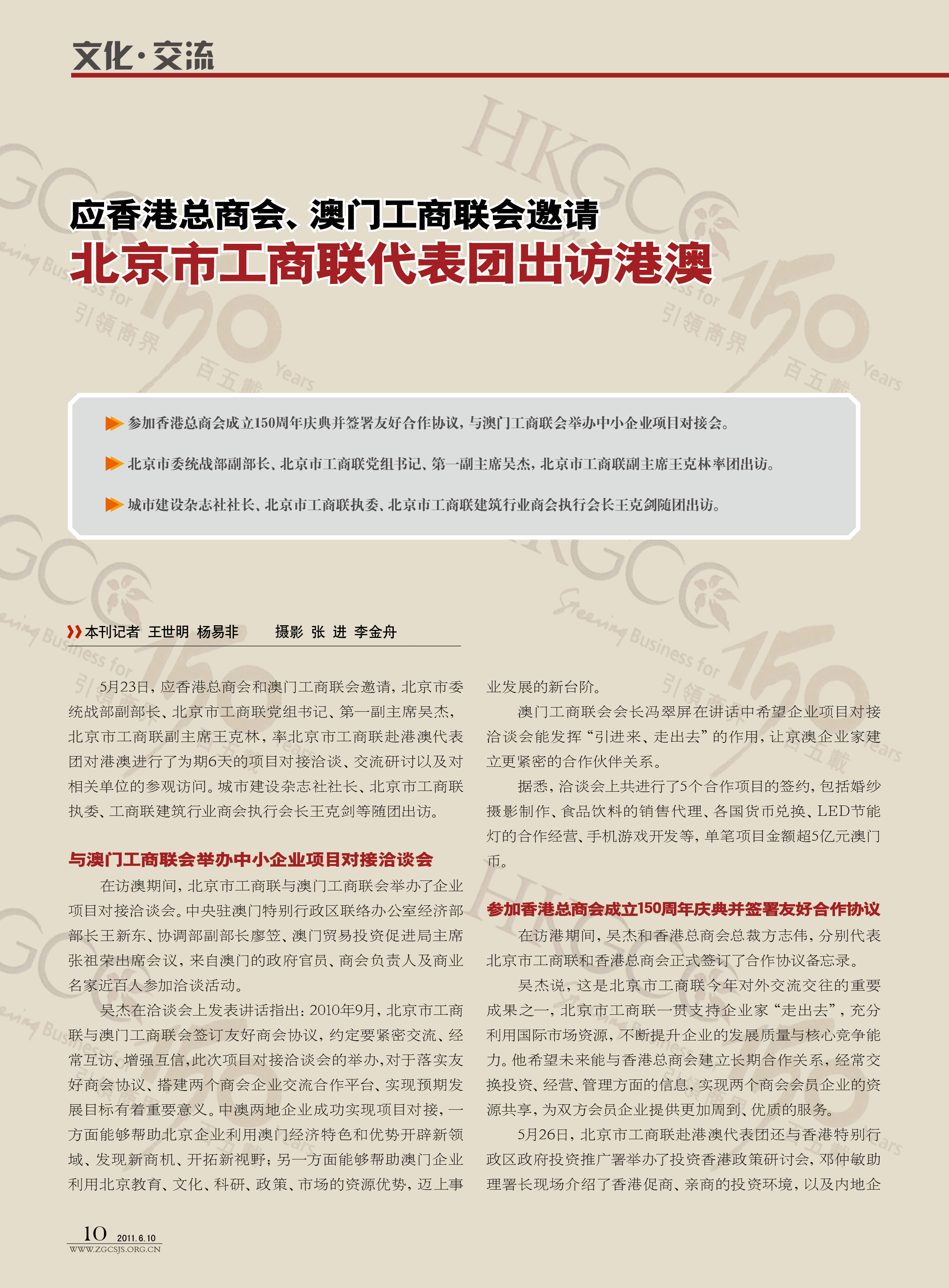 应香港总商会、澳门工商联会邀请 北京市工商联代表团出访港澳