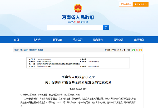 河南省政府办公厅印发《关于促进政府投资基金高质量发展的实施意见》,提出8方面25条措施,在突出政府引导和政策定位、提升基金市场化运作水平、规范管理防范风险等方面...