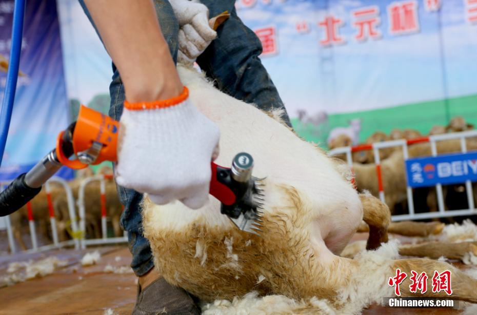 全国32名选手甘肃庆阳PK剪羊毛 动作娴熟不伤羊