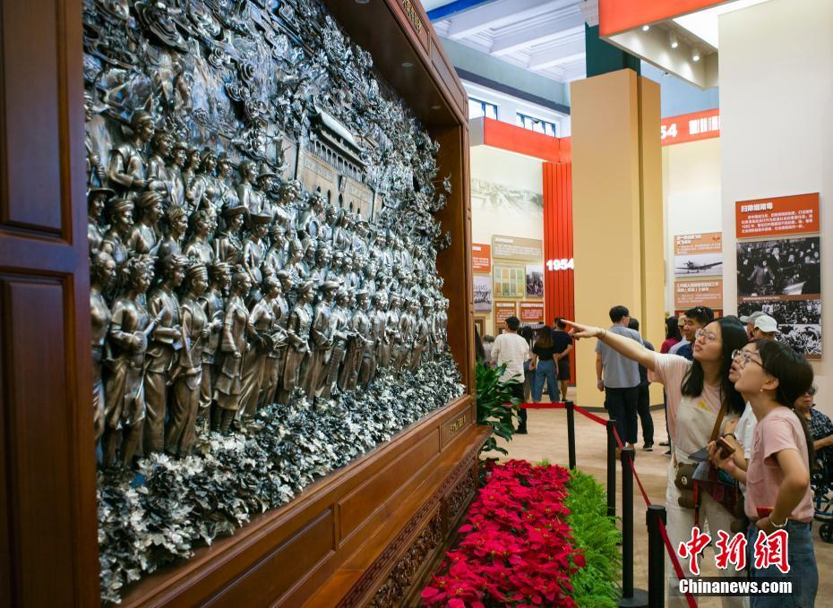 9月24日,“伟大历程 辉煌成就——庆祝中华人民共和国成立70周年大型成就展”在北京展览馆向公众开放,吸引大批参观者。中新社记者 侯宇 摄