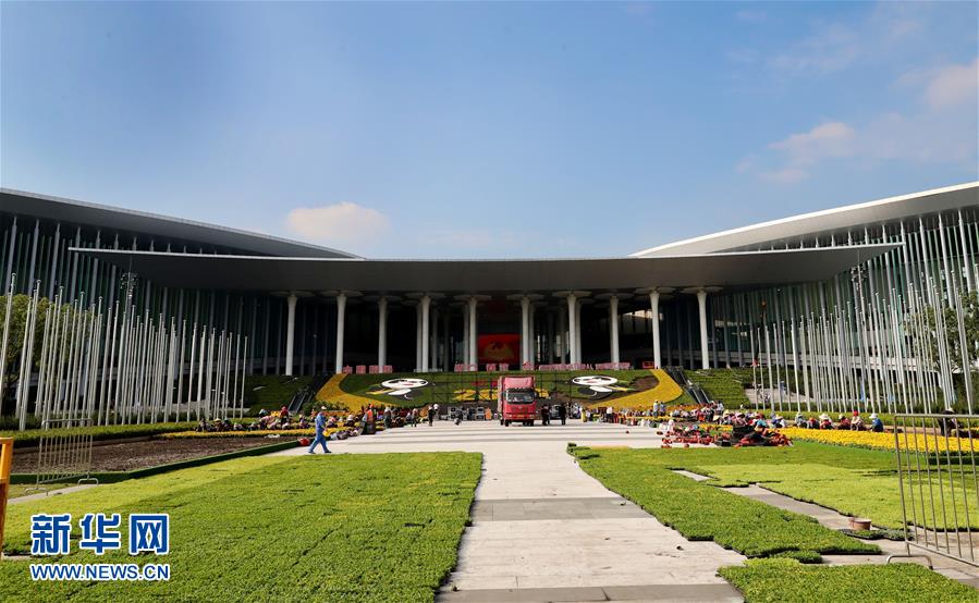 10月21日,位于国家会展中心(上海)的地铁站出入口装饰着进博会元素。当日,第二届中国国际进口博览会国家展参展国名单公布。据悉,国家展总面积3万平方米(建筑面积),将有来自世界各地60余个国家和3个国际组织搭建展台,展示贸易投资领域的发展状况和成就。目前,进博会场馆装饰施工工作正在进行,国家会展中心(上海)将以全新面貌迎接各国嘉宾的到来。新华社记者 方喆 摄