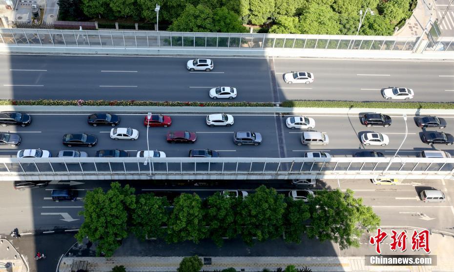 4月27日,武汉珞狮路段车流密集。随着复产复工的持续推进,工作日早高峰时,武汉街头的车辆川流不息。中新社记者 张畅 摄