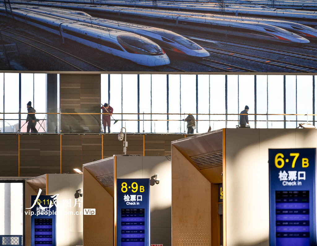 车站位于北京市朝阳区东风乡,建筑面积18.3万平方米,设计总规模7台15线。车站整体展现活力之都建筑创意,融入“灰砖、红墙、金瓦”等浓郁的北京元素。外立面整体呈三段式布局,包含11种幕墙形式,最亮眼的当属254米长的超大折线玻璃幕墙,486块玻璃两两呈90度夹角相互支撑,共同组成一扇巨型“屏风”。据中铁建设北京朝阳站装饰装修工程负责人崔凯介绍,组成这扇“屏风”的单块玻璃高6米,宽1.075米,重达750公斤,高度和重量均创国内站房外幕墙之最。刘帅冶摄(人民图片网)