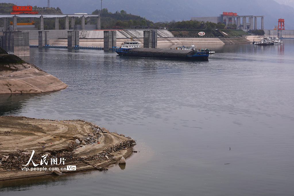 据长江水文局适时水情信息显示:截至20日18点三峡水库水位为165.8米,与三峡水库实施生态蓄水最高水位175米相比,下降了9.2米。据了解,这是三峡水库在枯水期为长江中下游实施生态补水,确保农业生产用水,并在夏季洪水到来之前将三峡水库水位下降至145米,腾出足够的库容防御夏季洪峰的常规举措。黄善军摄(人民图片网)