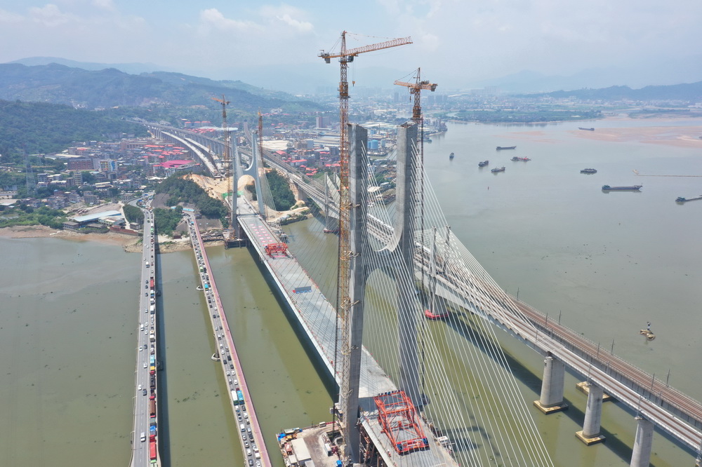 6月17日,由中国中铁大桥局承建的新建福厦铁路乌龙江大桥举行合龙仪式。新建福厦铁路乌龙江大桥是一座四线高低塔双索面混合梁斜拉桥,是新建福厦铁路全线重点控制性工程。大桥全长739.9米、主跨432米。