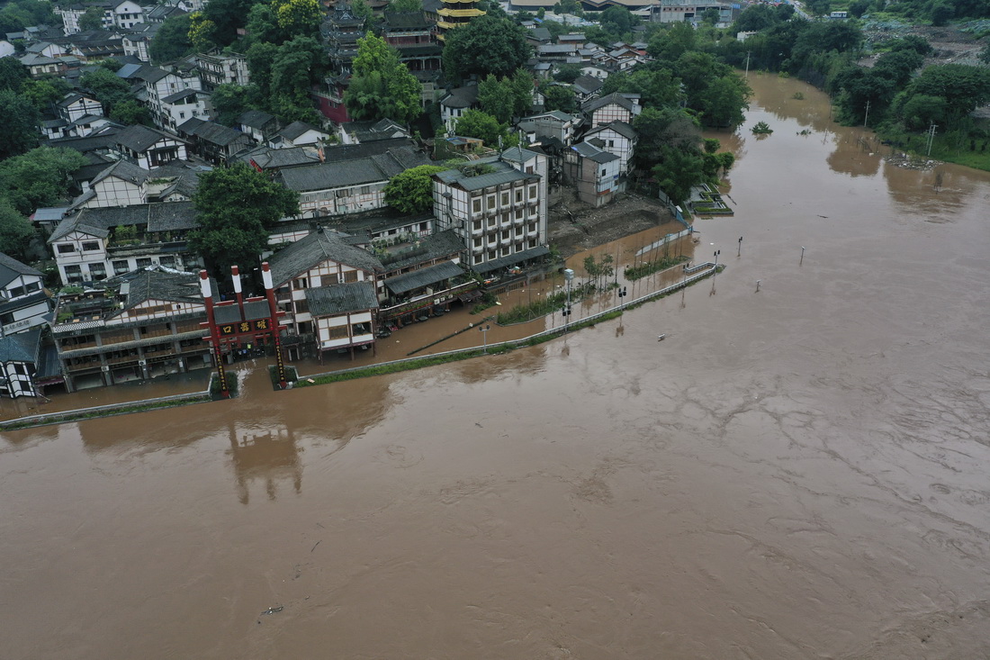 受持续强降雨影响,长江上游支流嘉陵江出现超警戒水位洪水,重庆市防汛抗旱指挥部9月6日已将防汛Ⅳ级应急响应升级为Ⅲ级。新华社记者 王全超 摄