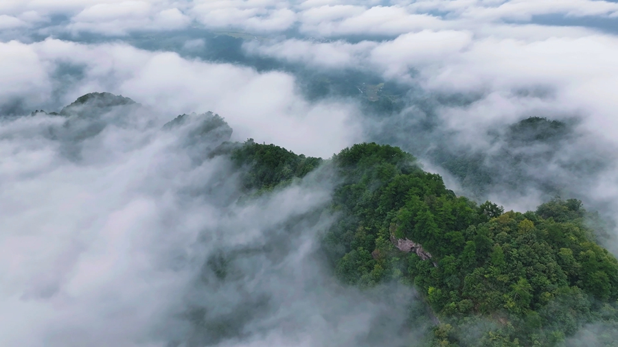 初秋时节,位于安徽省休宁县的齐云山风景区横江如练,景色宜人,清澈的江水倒映着两岸的民居与稻田,构成一幅动静相宜、色彩斑斓的乡村水墨画。