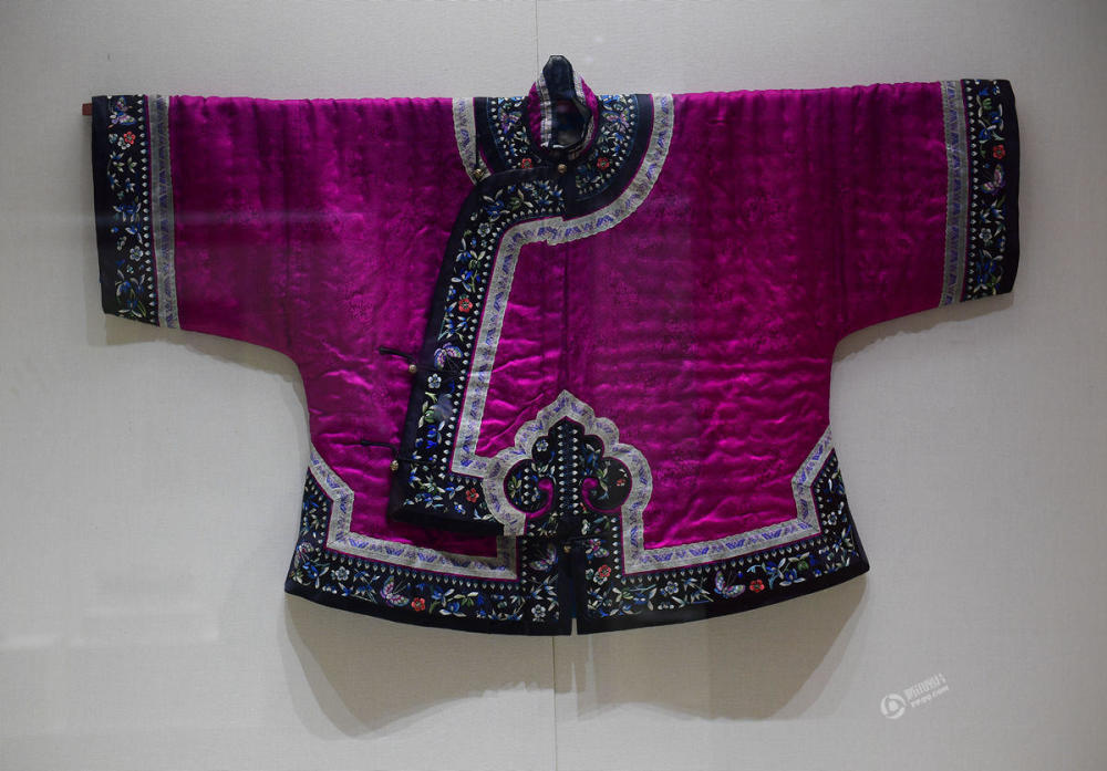 2017年1月5日,辽宁省沈阳市,沈阳故宫博物院举行“锦绣华彩—院藏清宫织绣展”,清朝皇帝冬季朝袍首次亮相。沈阳故宫是中国仅存的两大古代皇家宫殿建筑群之一,为清朝初期努尔哈赤和皇太极的宫殿,距今近400年历史,贮藏近20万件清宫御用物品和内府秘籍。图为清明黄江绸绣金龙出锋夹朝袍。视觉中国