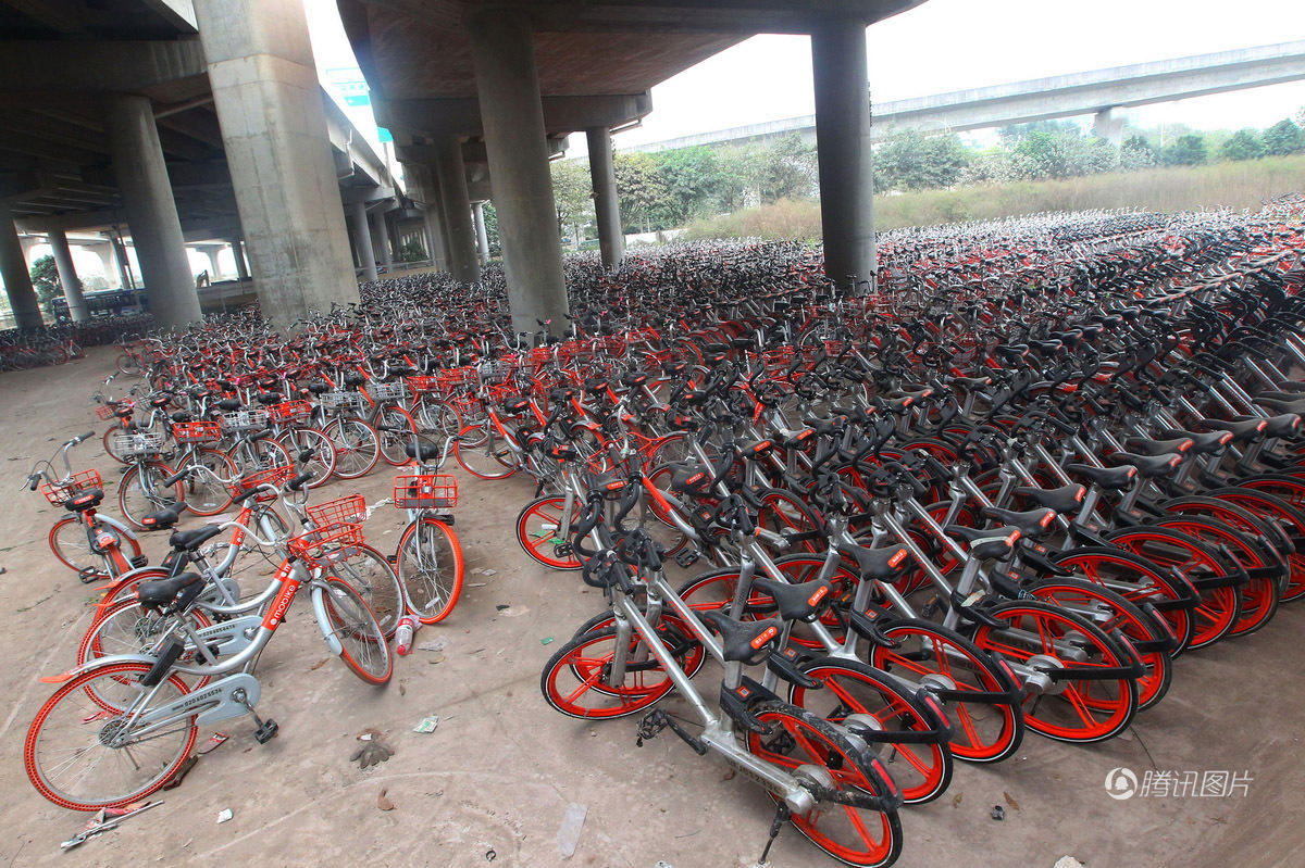 1月18日下午,广州海珠区新洲立交桥下摆满了共享单车。据记者观察,这些车目前处于无人使用的状态。南方都市报 马强/视觉中国