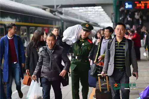 春运首日,武警重庆总队官兵为过往旅客保驾护航。