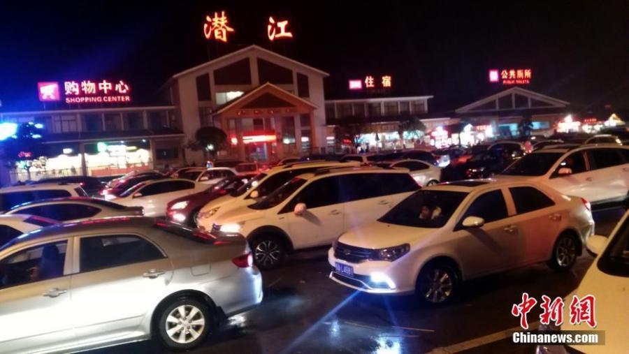 2月1日晚,沪渝高速湖北潜江服务区挤满了返程的车辆。当日是中国农历丁酉鸡年正月初五,随着春节长假临近结束,中国各地高速公路迎来返程客流高峰。张畅 摄
