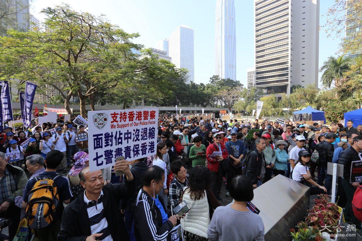 2月20日,香港多个民间团体发起“撑警大游行”,声援被判监的七名警务人员,约3500人参与,当中不乏休班警员,多名退休警队高层亦有出席。大公报记者何嘉骏摄