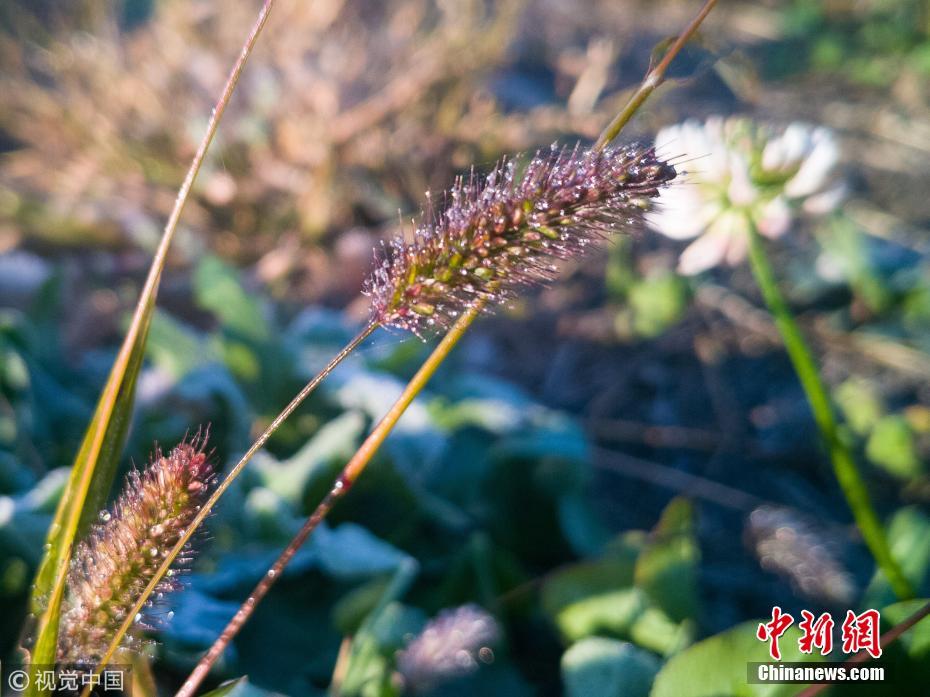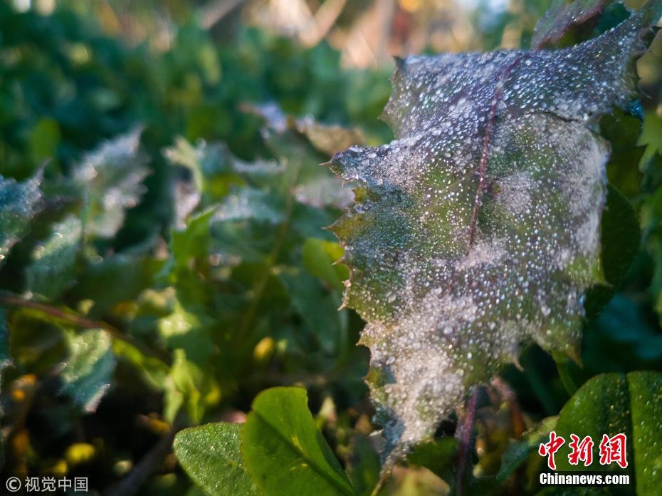 10月15日,在长春一公园内,路边的花草裹上了一层白色的霜冻。当日,长春最低温度跌倒破冰点。席海波 摄 图片来源:视觉中国