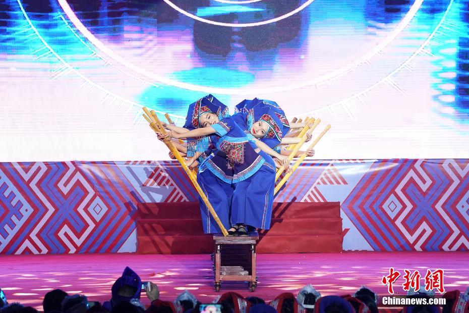 1月23日晚,2019中国(广西)壮语春节联欢晚会在广西合山市举行。晚会主题为“中国壮乡六十载 绣球飞舞新时代”,曲目主要以原创的壮语歌曲为主,用壮歌传唱壮乡情,用民族舞蹈展现壮乡美,歌唱壮乡美好新生活,并通过壮语春晚舞台,传承和发展壮民族优秀文化。中新社记者 陈冠言 摄