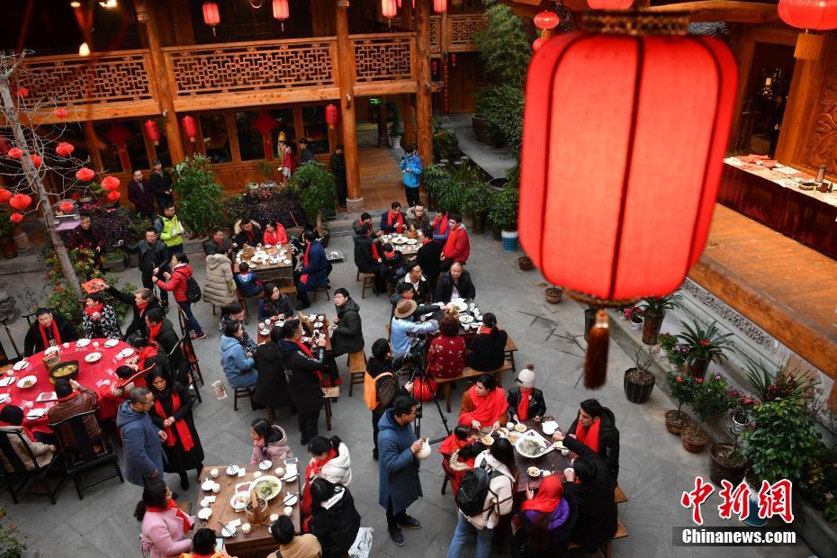 1月29日,海内外家庭阆中过大年活动在“春节发源地”四川阆中正式启动,来自韩国、芬兰、泰国、巴基斯坦等国家和地区的海内外家庭在阆中古城学扎染、包饺子、写“福”字等,体验千年古城的民风民俗。张浪 摄