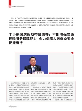 金秋十月,千家万户尽享美好假日时光。国庆假期首日和最后一天,交通运输部部长李小鹏在部带班值守,并向坚守一线