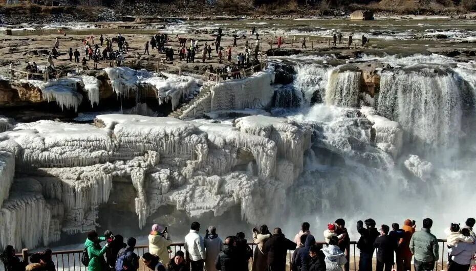 山西吉县:黄河壶口瀑布现冰瀑玉壶景观