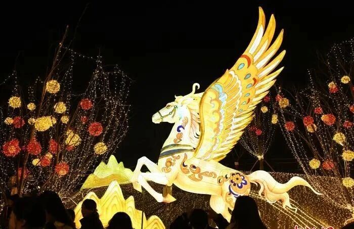 110日晚,重庆龙塘湖公园内打造的璀璨灯饰营造出浓浓年味,吸引市民前往参观打卡。随着丙午马年的临近,重庆不少商圈、公园、街头陆续布置起彩灯等装饰,营造喜庆节日氛围。