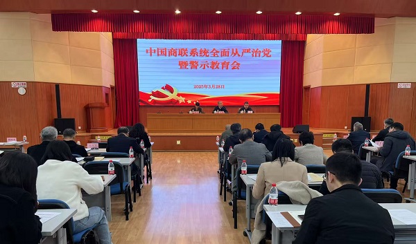2025年3月28日下午,中国商联党委召开中国商联系统全面从严治党暨警示教育会。中国商联党委常委,党委委员、纪委委员,各党组织书记、党务联系人共80余人参加了会议。会议由党委副书记沈实主持。
