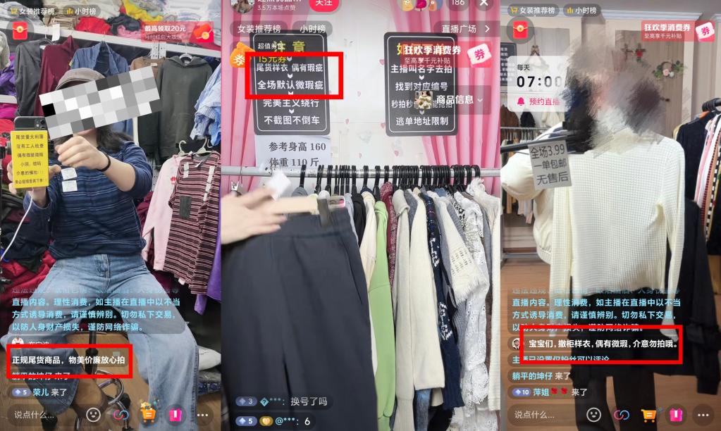 购买这些“样衣”的“家人们”,往往是收入有限、对价格敏感的低收入群体,维权意识和能力也相对较弱。他们抱着“买实惠”的朴素想法,换来的却是“化过妆”的旧衣服、甚至“破烂垃圾”。