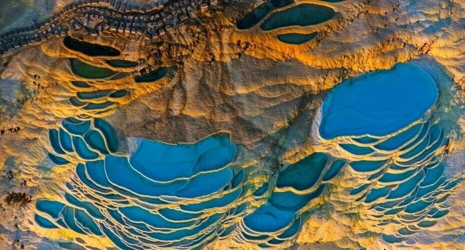 云南迪庆:日出时分白水台“仙人遗田”染金边