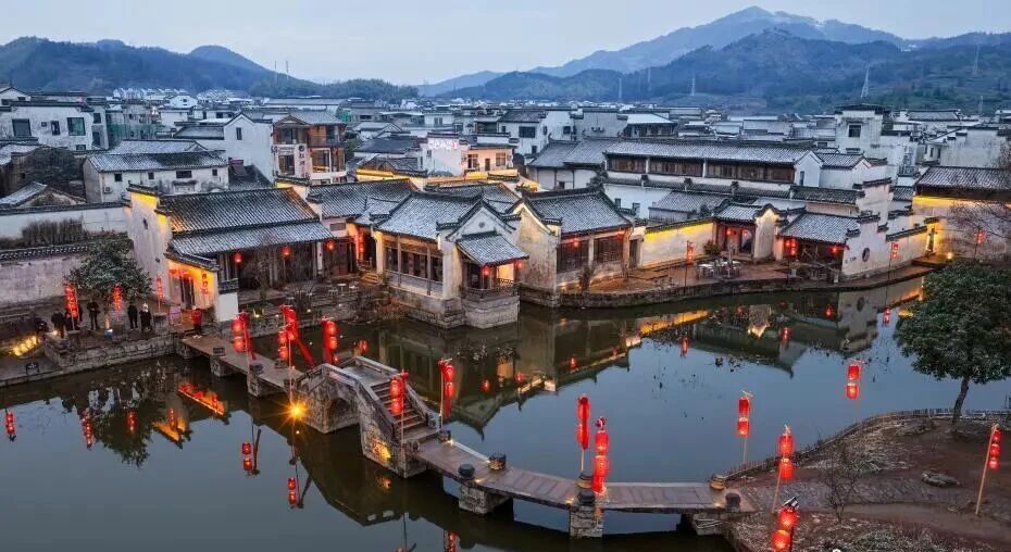 雪落黄山鱼灯摇曳点亮古村冬夜
