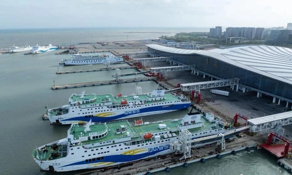 9月27日,海南海口,新海港码头停泊的客滚船。海口市交通运输和港航管理局发布通告,受今年第20号台风“博罗依”影响,海口新海港、秀英港和铁路南港于9月27日9时起停运。预计停运将持续至9月28日夜间。
