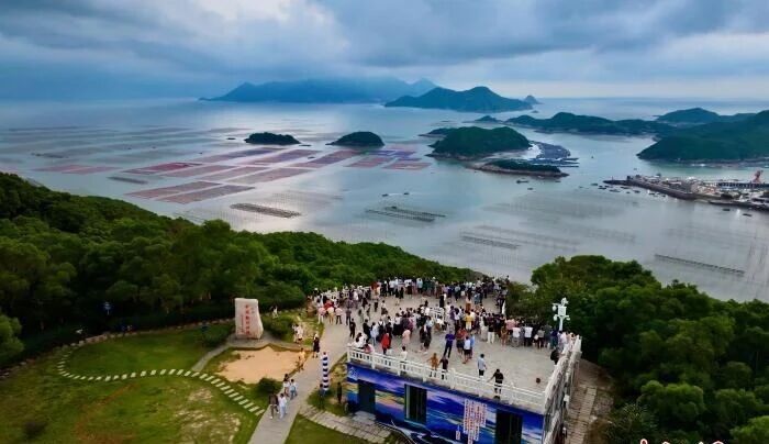 10月8日,福建霞浦,游客观看滨海风光。国庆中秋假期,福建省霞浦县的海滨魅力尽显,澄澈的海水、奇特的滩涂、错落的渔排构成一幅绝美画卷,引得人们纷纷驻足欣赏。
