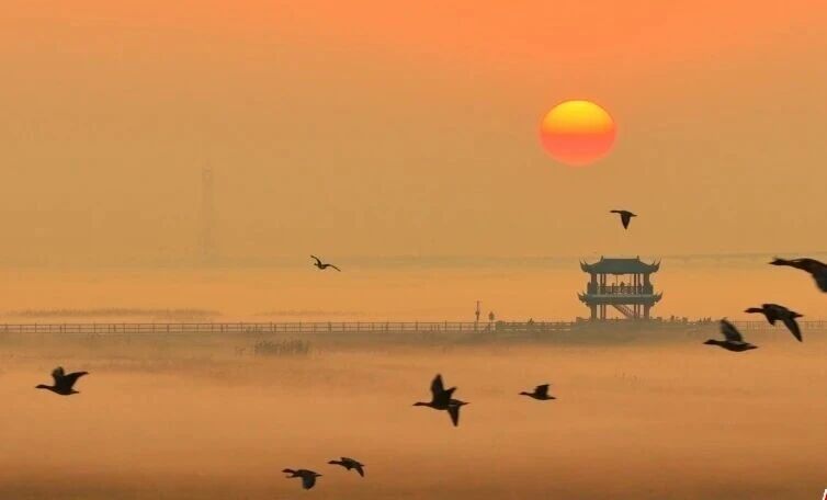 薄雾轻笼鄱阳湖再现“秋水共长天一色”诗意