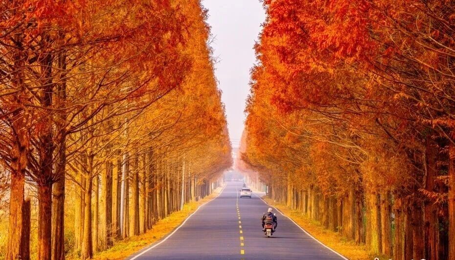 2025年12月8日,浙江嵊州,三界蒋镇红杉公路美如画。