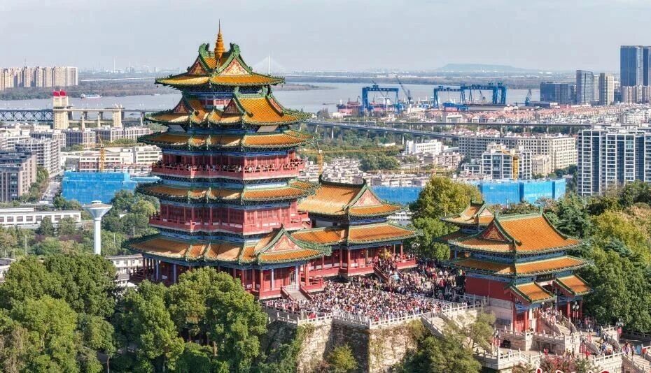 10月29日,江苏南京,民众登高阅江楼,赏风景过重阳。