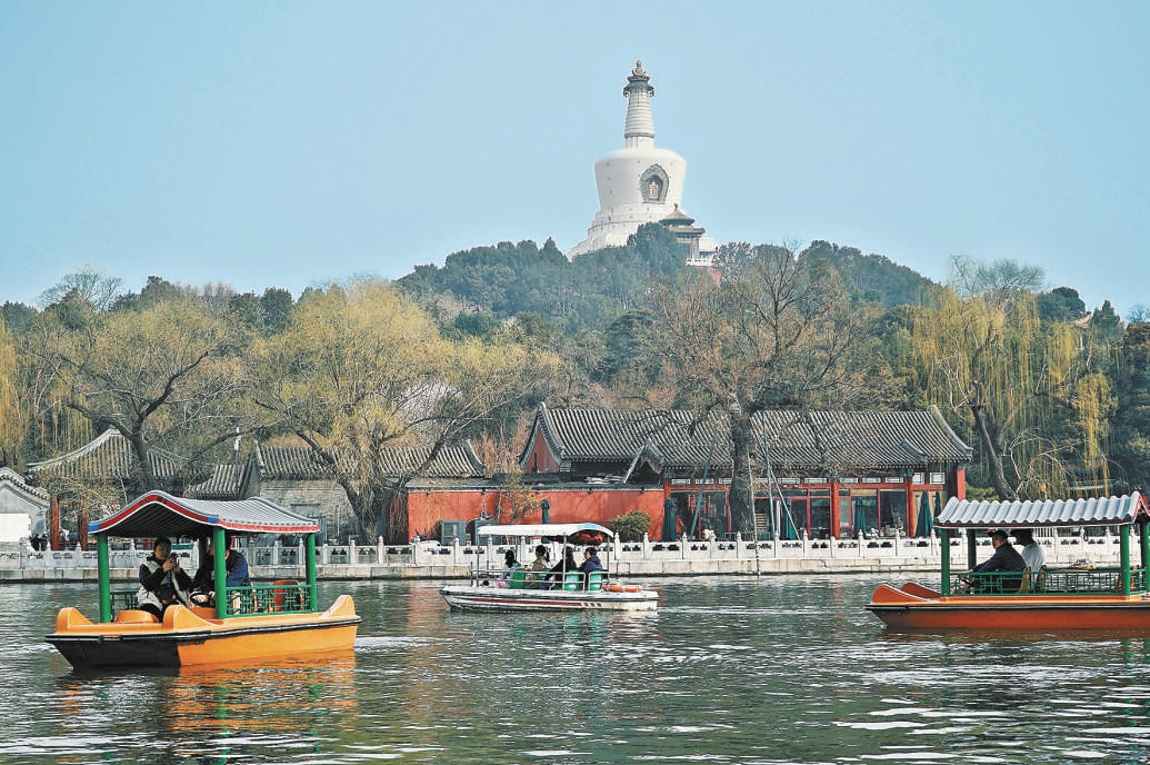 上周末,北海公园游船正式开航,市民游客泛舟湖上,尽享无限春光。 本报记者 程功摄