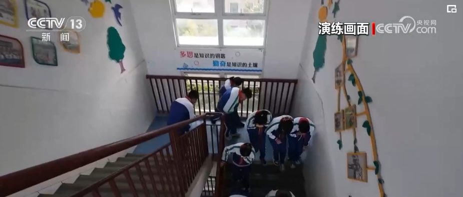安徽宿州某小学模拟火灾场景,开展应急疏散逃生避险演练。几百名学生在消防员和老师的指引下,沿着楼梯紧急转移至学校操场上的安全区域。消防员还现场为同学们普及了灭火器材的操作使用方法。