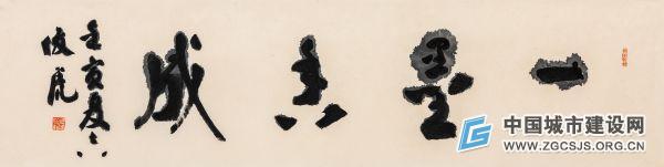 封俊虎创作的这些作品,就是使用了这种墨液,通过高超娴熟墨汁浓度的控制和笔触力度的把握,使墨和施加的水分离,层层涨染,形成“筋、骨、血、肉”俱全的鲜活生命体,创造出墨韵华丽,字迹清晰,厚重沉实,雄浑朴茂的艺术形态。“涨墨”效果最突出的作品有“煮茶论道”“无量佛缘”“弘道向善”“汤铭日新”“梅雪煮茶”“融古为我”等十余件。这些作品施墨如雨,湿不涨染,譬如音乐,涨墨字就是音符群中最强音,与其它没有涨墨的字相接,营造出了铿锵有力的节奏感。它不仅在意象上增加了线条的厚度,在视觉上也有明显的厚实,似印印泥,彰显了立体感,提升了观赏性。以高超技艺将展现在平面二维空间上的书法创造出了三维空间的效果,产生了凝重中蕴含跳荡,朴厚中凸显飘逸的美学现象。