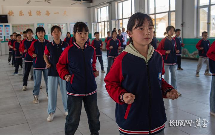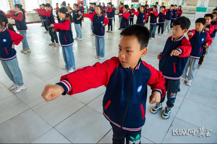 枣强县恩察镇明德小学学生在练习武术。李金刚 摄