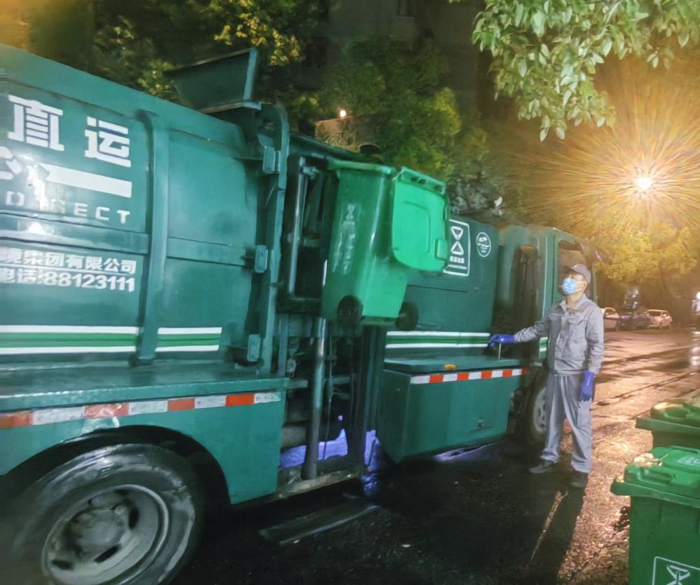 2024年5月4日凌晨,杭州市环境集团清运车驾驶员朱国栋在清运垃圾。(杭州市环境集团供图)