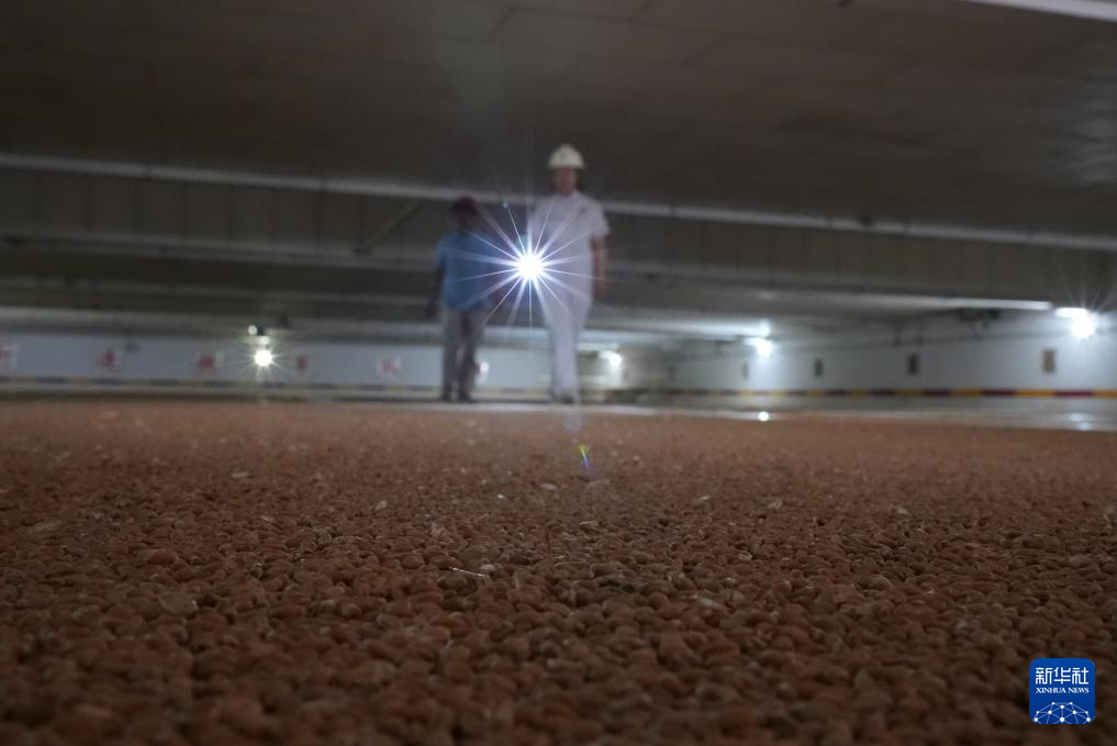 中央储备粮邯郸直属库有限公司的工作人员在检查仓库。新华社记者 赵鸿宇 摄