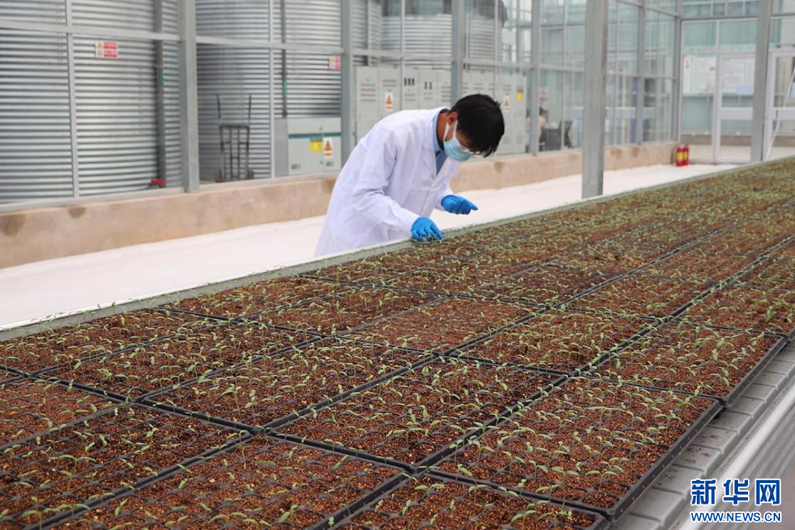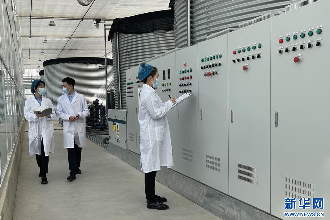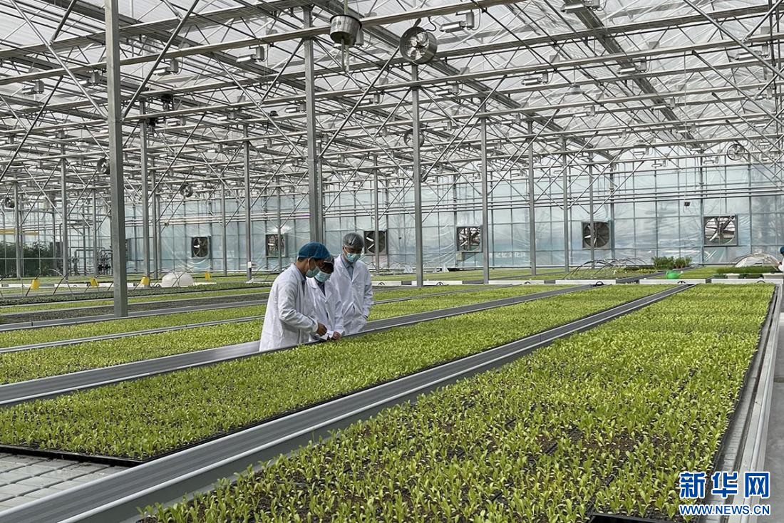 位于保定高碑店的河北智图现代农业园区内,工作人员查看智能温室内的种苗生长情况。新华网 王立鹏 摄