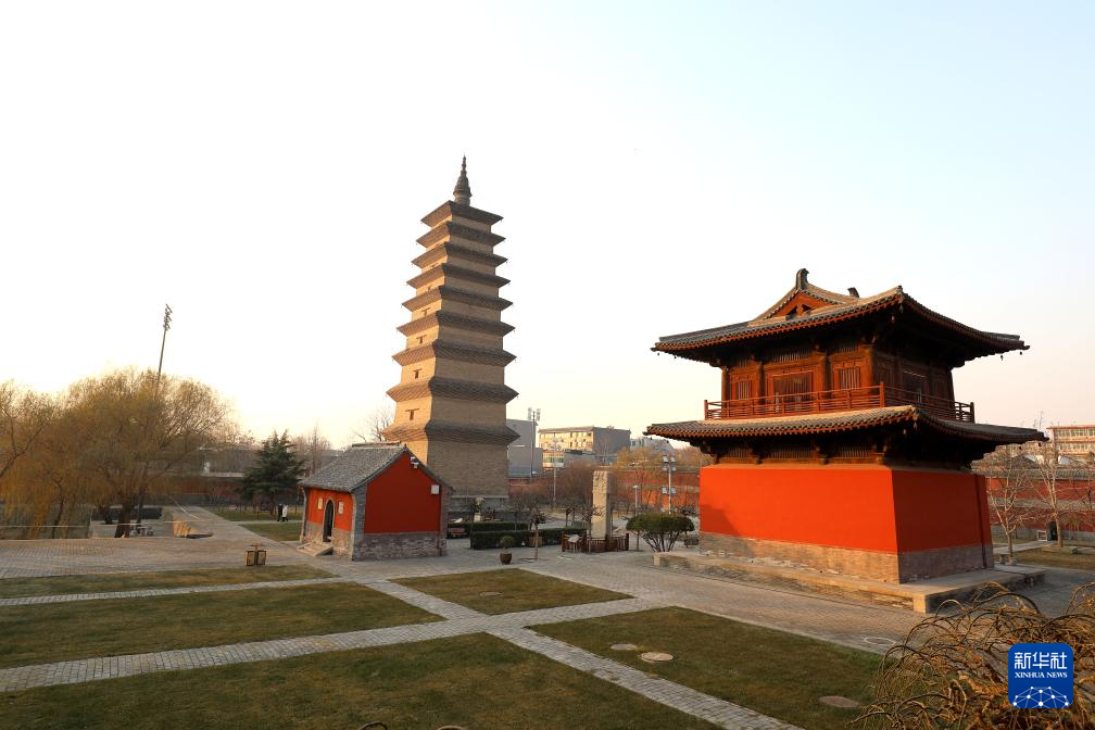 夕阳下的正定开元寺须弥塔和钟楼。(梁子栋摄)