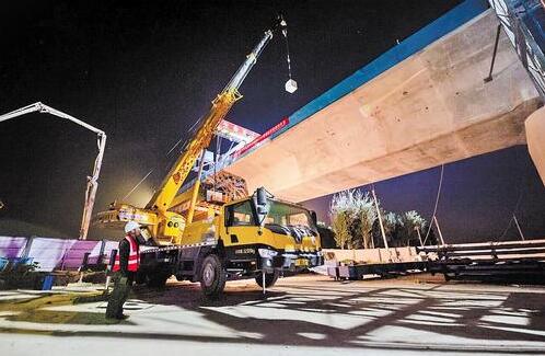 中铁十一局雄商高铁站前六标项目部经理谭文介绍,因为S324省道车流量较大,所以决定采取不断交施工模式。枣清特大桥跨S324省道连续梁的顺利合龙,打通了西候制梁场至枣强特大桥23公里的架梁通道,为明年无砟轨道施工提供了作业面,更为后续连续梁合龙施工积累了经验。