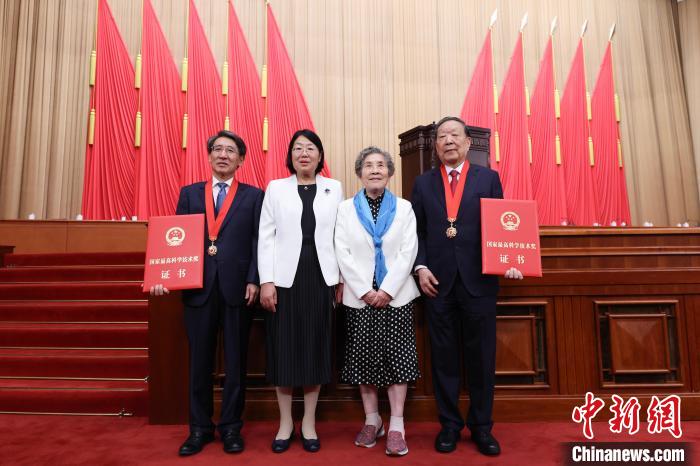 图为李德仁夫妇(右一、右二)、薛其坤夫妇合影。(来源:中新网 摄影:盛佳鹏 )