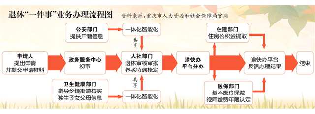 《方案》还指出“减少跑动、精简材料”等改革举措。比如,一窗受理减少跑动,退休“一件事”所涉及的具体事项全部纳入“渝快办”平台集约管理,并入驻政务服务中心集中办理,全面构建“窗口端、网端、掌端”服务新格局。