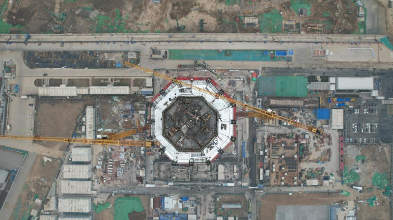 3月27日拍摄的中国中化大厦建设现场(无人机照片)。当日,中国中化大厦实现核心筒主体结构封顶。新华社记者 牟宇 摄