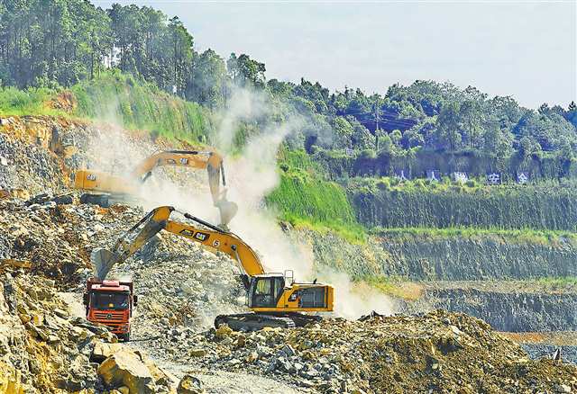 破碎机、推土机、挖掘机、渣土车作业不停,面积近3个标准足球场大小的采矿区粉尘滚滚,现场没有任何喷淋降尘设施……这是8月6日记者随市生态环境局“治气”攻坚督导帮扶组(以下简称“督导帮扶组”)在南川区岩城矿业有限公司采矿场暗访时看到的情形。