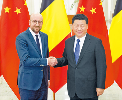 习近平强调,中比要立足真诚友好,妥善处理涉及彼此核心利益和重大关切的问题。中方高度赞赏比利时政府坚持一个中国政策。双方要立足开拓创新,两国经贸合作基础深厚、潜力巨大。双方可以结合各自优势,以先进制造业、新能源、生态环保、现代服务业等为重点,积极开展高技术、高附加值的新型合作,加强联合创新和研发。希望比方抓住“一带一路”建设带来的机遇,推进中欧、亚欧物流产业发展和跨境电子商务合作。中方赞赏和欢迎比利时加入亚洲基础设施投资银行的积极意愿,祝愿比利时早日成为亚投行成员,欢迎比方积极参与亚欧海陆联动大通道、泛欧铁路网等建设。双方要立足开放共赢,中比都致力于维护公平、开放的国际贸易体系,中方始终从战略高度重视欧盟,坚定支持欧洲一体化进程,深化同欧盟的战略伙伴关系。希望比方推动欧盟如期充分履行《中国加入世贸组织议定书》第十五条义务,继续为中欧关系发展发挥积极作用。